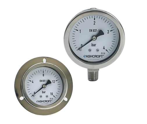 Ashcroft® 5008全不锈钢弹簧管压力表适用于一般工业设备配套,可提供黄铜或316不锈钢接液材质,多种接口和安装形式便于和设备配套使用。最大量程可达100MPa。
